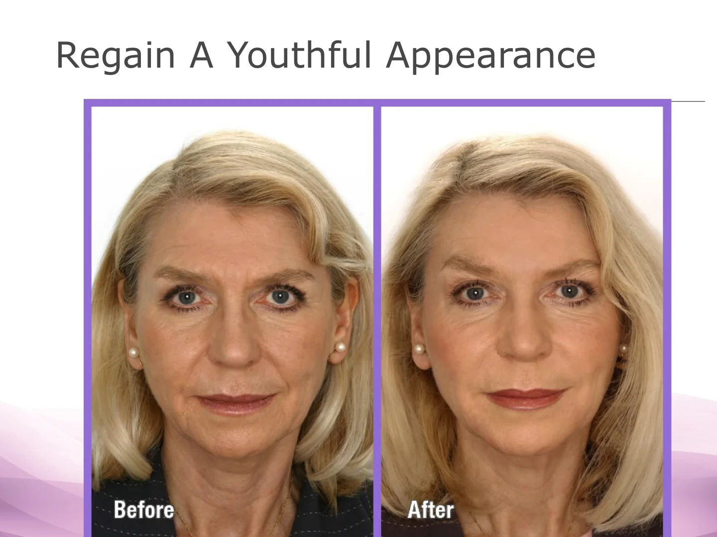 - Reduces frown lines, wrinkles, fine lines and other noticeable signs of aging